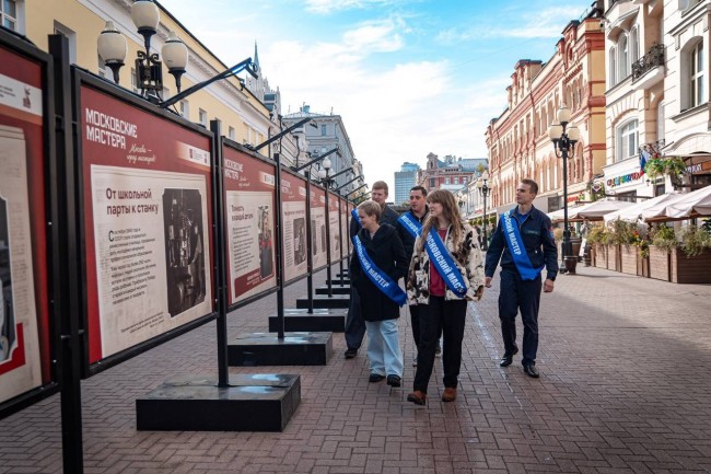 На Арбате возле Театра имени Евгения Вахтангова работает фотовыставка «Московские мастера – связь поколений». Она будет открыта до 14 октября.