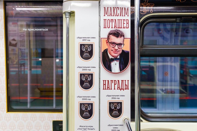 На станции метро «Проспект Вернадского» можно увидеть тематический поезд, посвященный 50-летию игры «Что? Где? Когда?». В вагонах пассажиры могут узнать о ее истории, создателях, знатоках и телезрителях, а также увидеть вопросы, которые звучали в эфире.