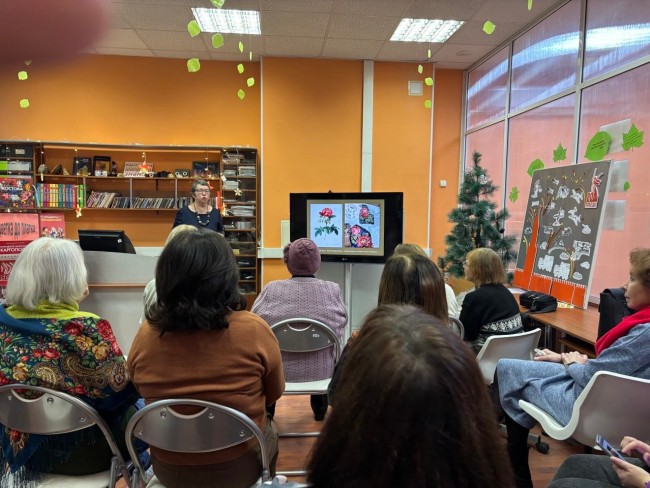 В библиотеке №215 прошла лекция «От цветка до платка» в рамках цикла мероприятий о ботанике в искусстве. Спикером выступила Елена Виничек, представитель Русского общества любителей ботанической иллюстрации.