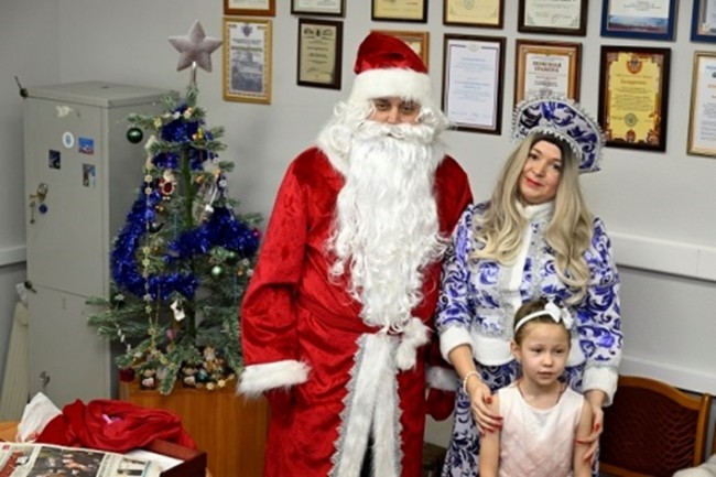 Главный сюрприз ждал гостей во время чаепития. Появившиеся на празднике Дед Мороз и Снегурочка поздравили детей, которые, в свою очередь, прочитали стихи и показали подготовленные новогодние номера.